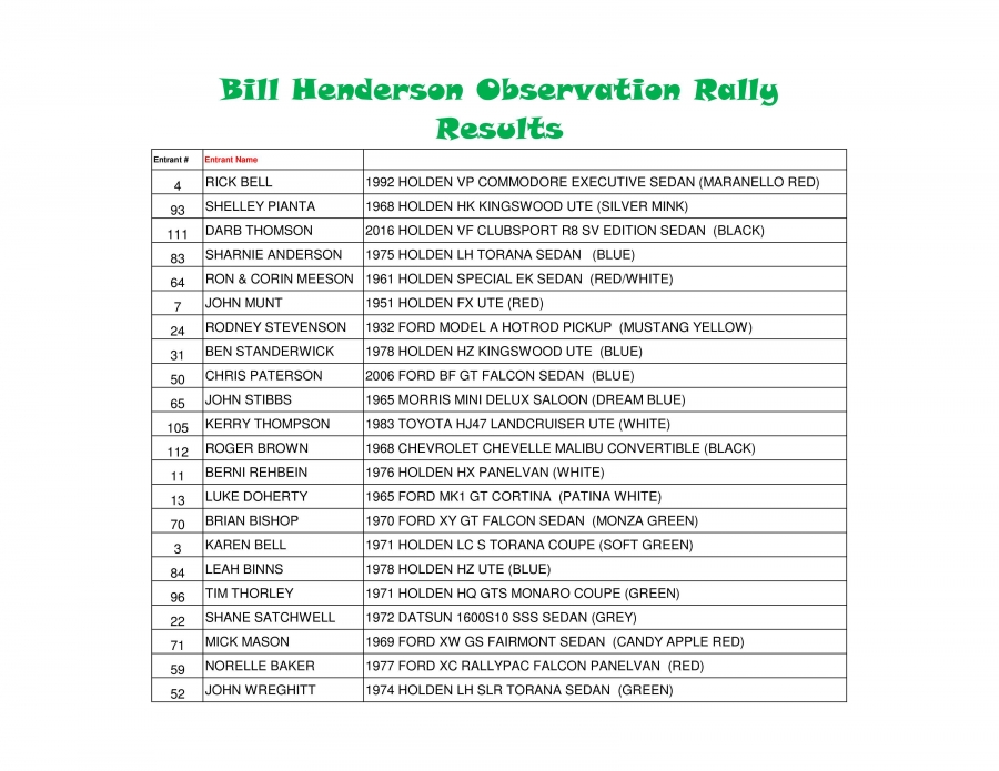 - We had 2 entrants tie for first in the Observation Rally but on count back, the winner beat the runner-up by 2 minutes.