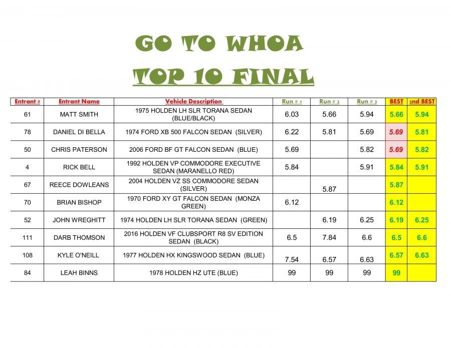- 4 of the Go To Whoa Entrants had Best Times in the 5 seconds.